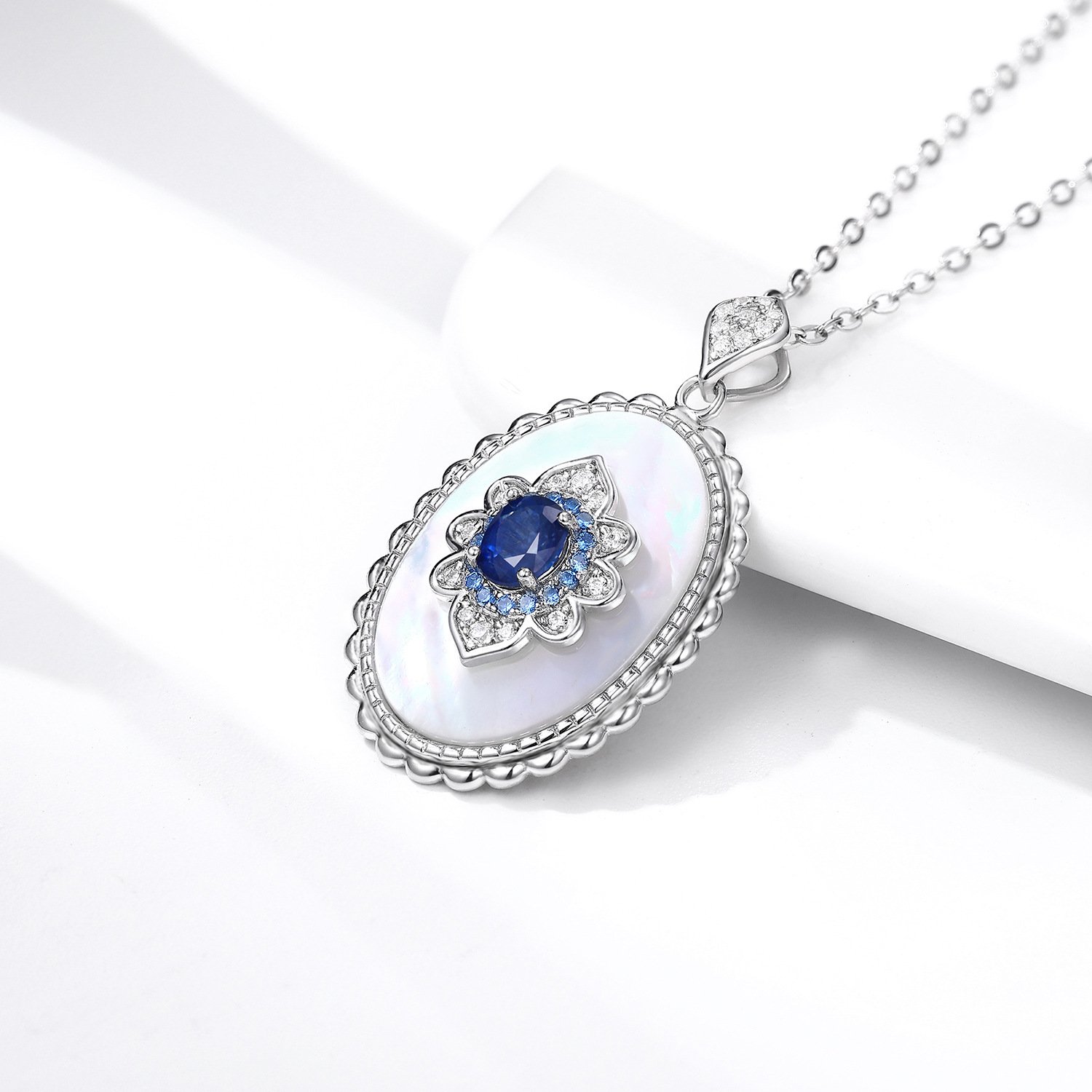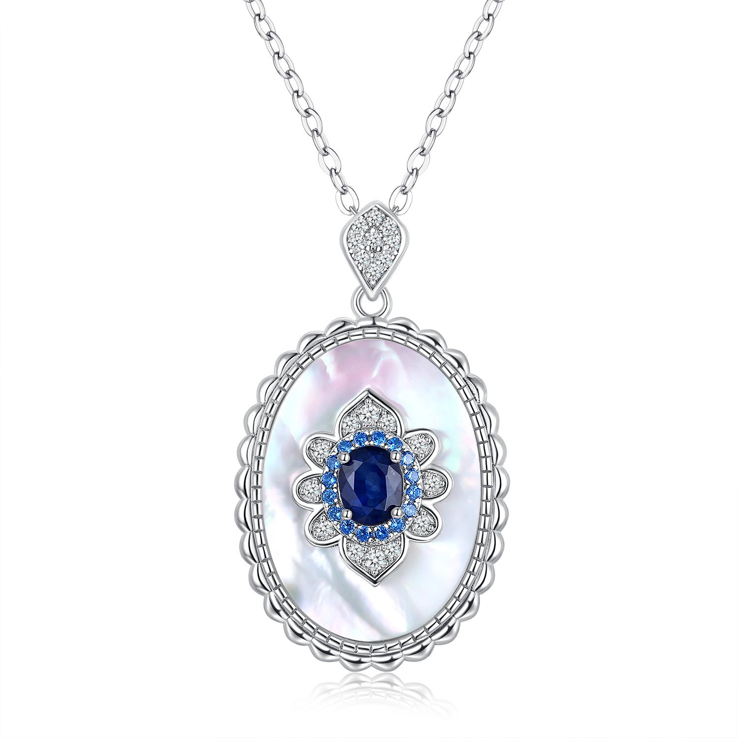 S925 Silver Inlaid Light Luxury Natural Sapphire Pendant Female Retro Design Natural Stone Necklace Natural Gemstone Necklace